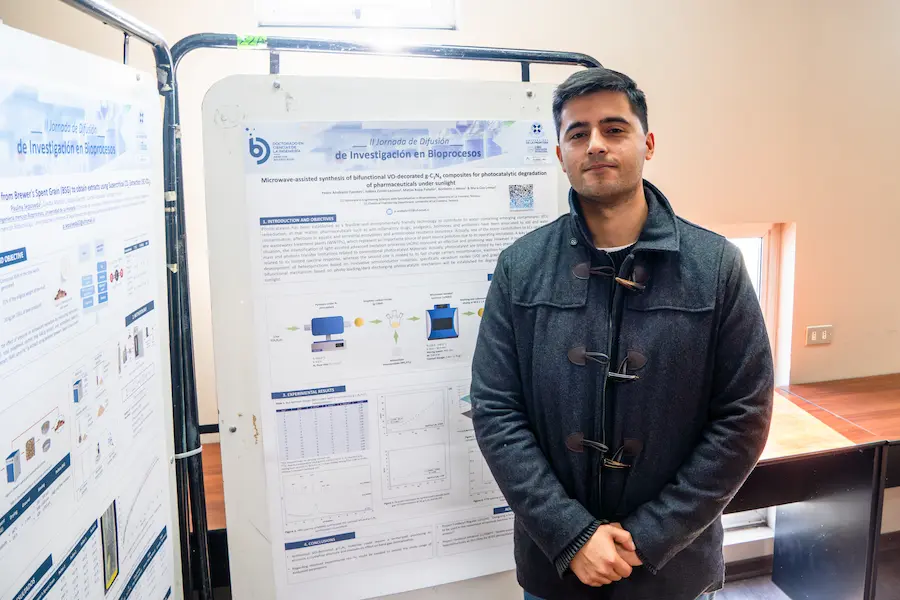 Durante la jornada, se presentaron los avances científicos de cuatro estudiantes del programa, quienes abordaron temas como encapsulación de compuestos bioactivos, tratamiento de aguas con tecnologías IoT, producción de aceites antioxidantes mediante microorganismos marinos y desarrollo de biopolímeros desde biomasa. La instancia incluyó además un espacio para visualizar pósters científicos y compartir experiencias entre los asistentes.